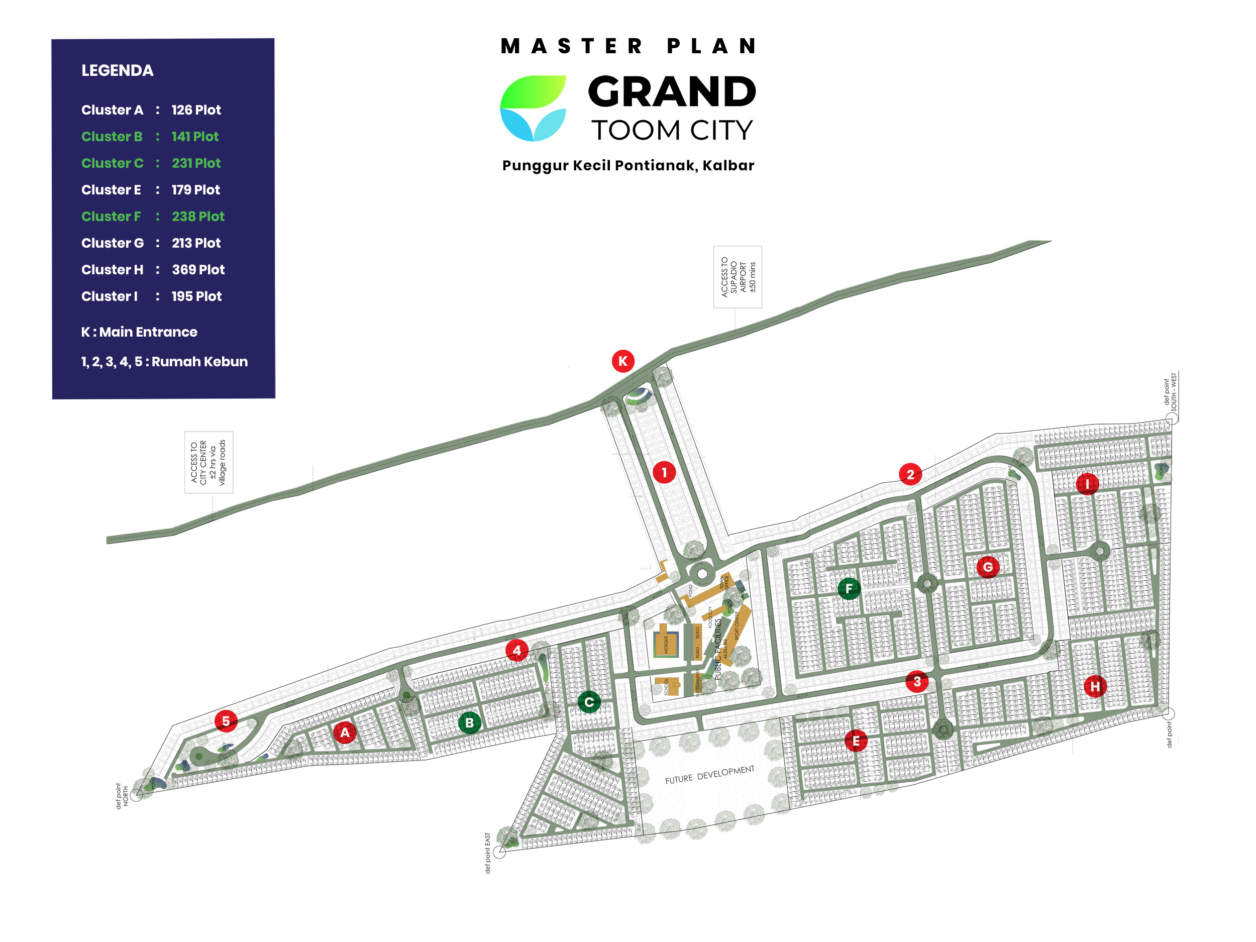 Grand Toom City merupakan pengembangan kawasan kota baru di Kabupaten Kubu Raya yang berkonsep Eco Green Living dengan mengintegrasikan klaster perumahan dan areal komersial, pusat bisnis, area perbelanjaan, sarana ibadah, sarana pendidikan, sarana kesehatan, taman kota, dan sejumlah fasilitas pendukung lainnya yang bertujuan menopang kualitas kehidupan serta percepatan nilai tambah pengembangan ekonomi.
